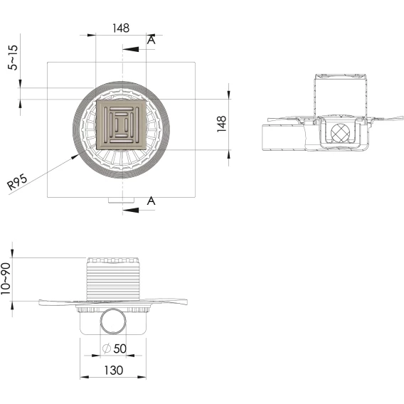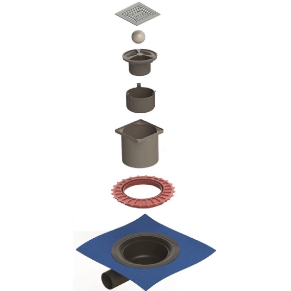 • Сифон PP с гидроизоляцией: горизонтальный выпуск D50 H65, монтаж 360°