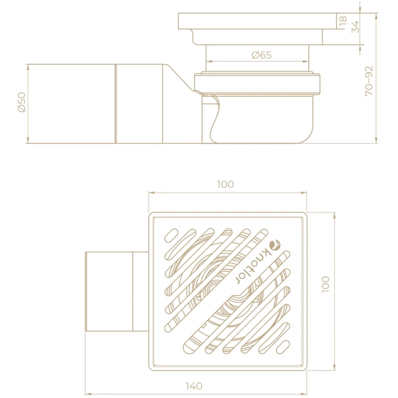 Душевой трап Knotlor Storm SDSL100BS 100x100/50 мм, с решеткой, перфорированный, нержавеющая сталь