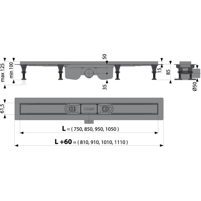 • Регулируемые монтажные ножки 0–27 мм, позволяют быстро и удобно установить желоб и выровнять его в горизонтальной плоскости