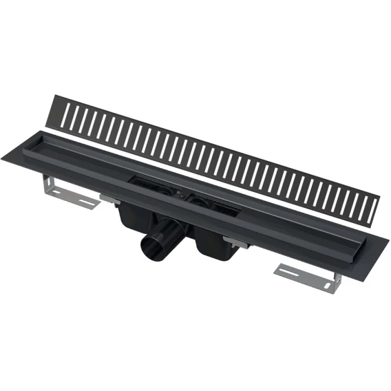 Душевой трап (лоток) AlcaPlast APZ1BLACK-750 + PURE-750BLACK 74,4 см, с решеткой, перфорированный, черный матовый