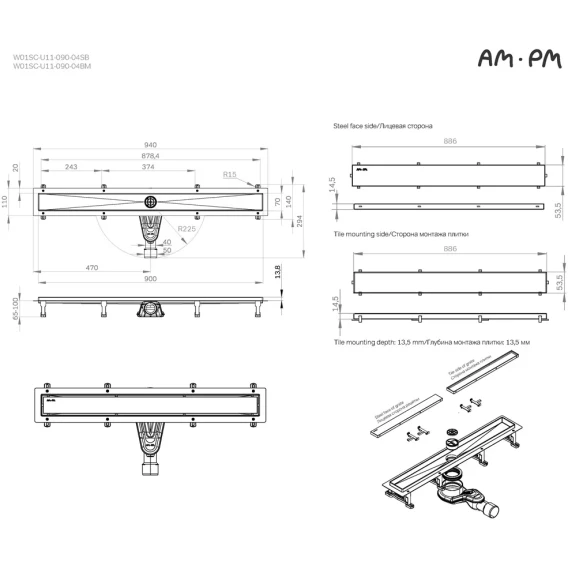 Гидроизоляционная лента, Решетка, Сифон, Ножки