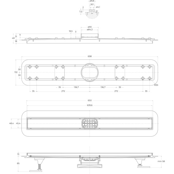 Решетка для волос, Решетка, Сифон, Ножки