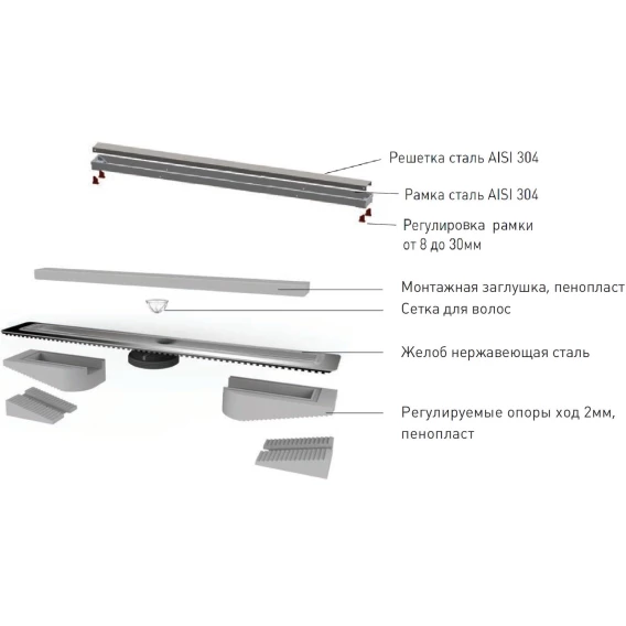 • Регулировка рамки и решетки по высоте от 8 до 30 мм