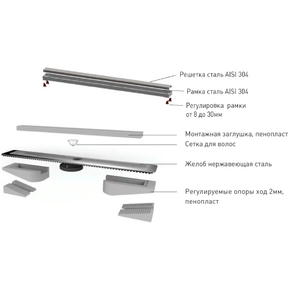 • Двусторонняя установка решетки: металл и вклейка плитки с регулировкой по высоте от 8 до 30мм