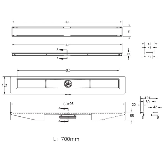 • Двусторонняя установка решетки: металл и вклейка плитки с регулировкой по высоте от 8 до 30мм