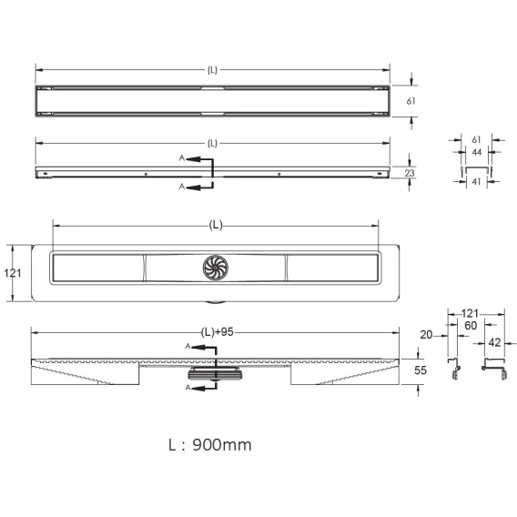 • Двусторонняя установка решетки: металл и вклейка плитки с регулировкой по высоте от 8 до 30мм