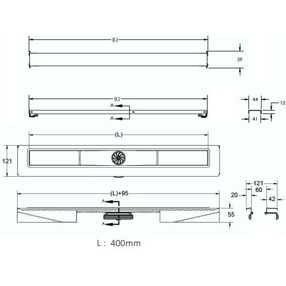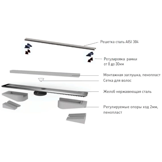 • Решетка и желоб водосток, нержавеющая сталь AISI 304