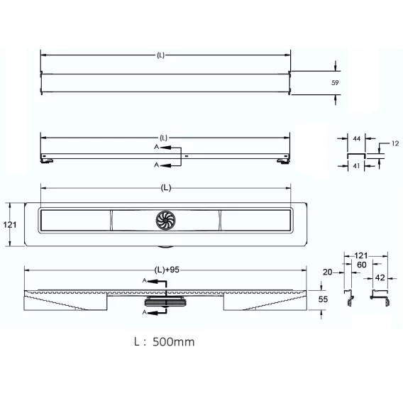 • Решетка и желоб водосток, нержавеющая сталь AISI 304