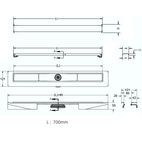 • Решетка и желоб водосток, нержавеющая сталь AISI 304