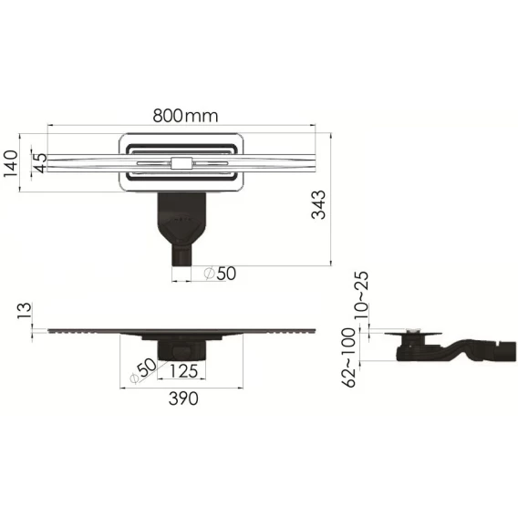 • горизонтальный выпуск D50 H60, пропускная способность 42л/мин, монтаж 360°