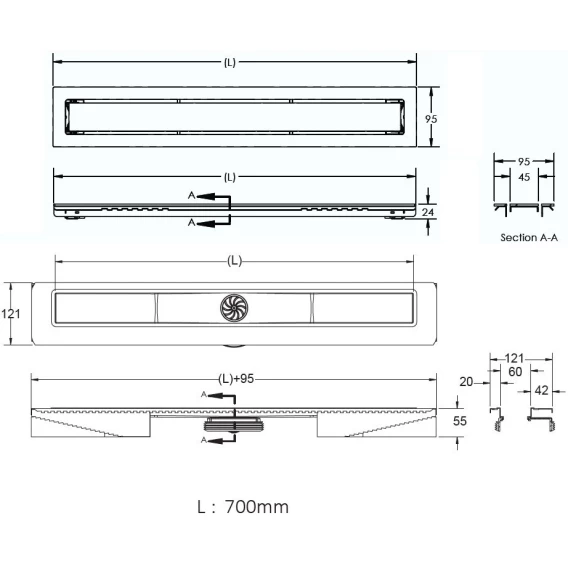 • Решетка и рамка толщина 3 мм, нержавеющая сталь AISI 304