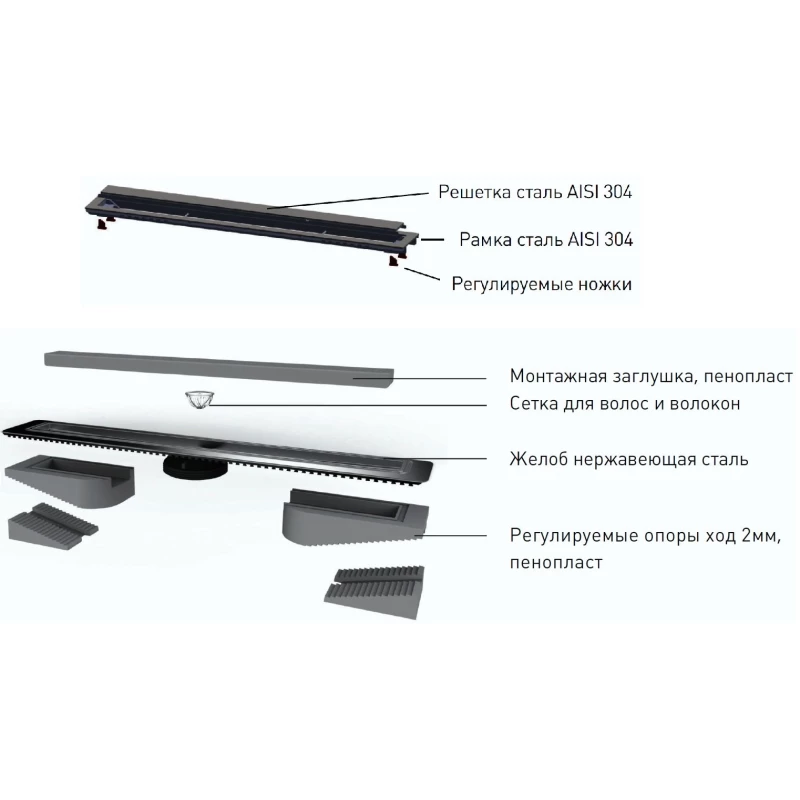 • Монтажная заглушка и регулируемые по высоте ножки, пенопласт