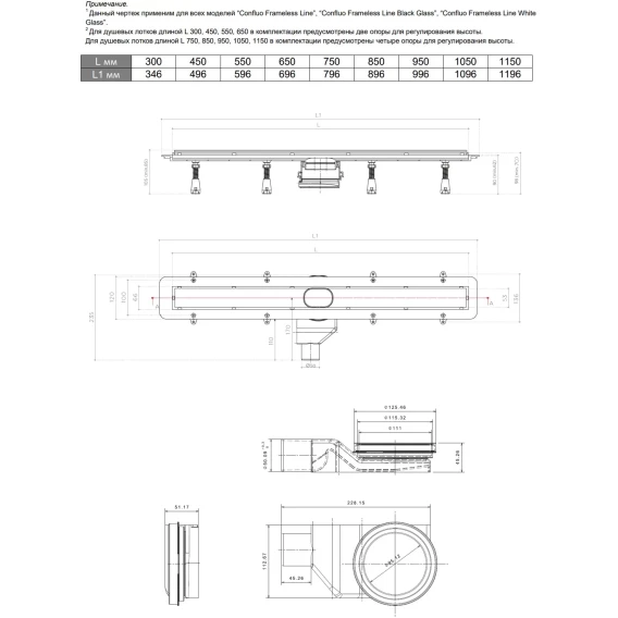 Душевой трап (лоток) Bettoserb Frameless Line 13701232 75 см, с решеткой, 2 в 1 под плитку, матовый хром