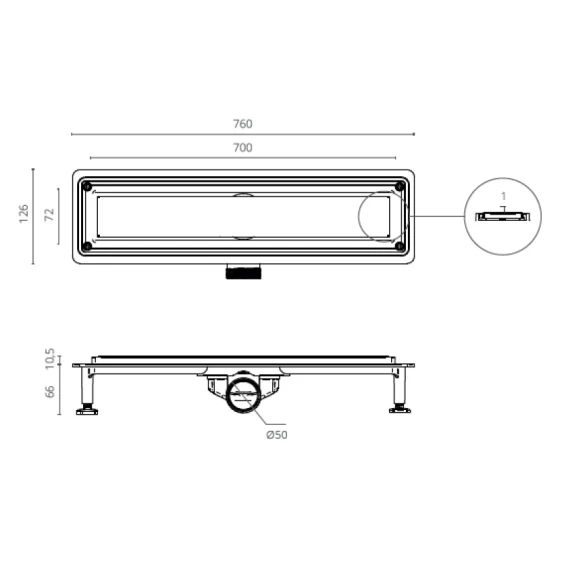 Душевой трап (лоток) Ctesi Flow Line BK4024540 70 см, с решеткой, щелевой, хром