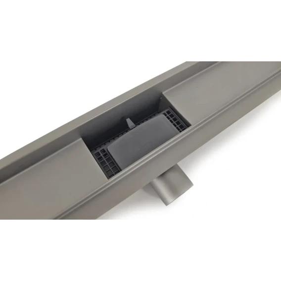 Душевой желоб ESBANO серии META – современный, качественный продукт, который максимально удобен как в монтаже так при использовании, будет практичным решением как для душевой зоны безбарьерного типа, так и для душевой с поддоном. Сифон выполнен из нержавеющей стали, также как решетка и корпус и имеет горизонтальный выход с выпускным отверстием на 40 мм. Отличительной чертой данной серии является запатентованная ловушка для волос, которая позволяет без особого труда удалять волосы и делать это максимально редко т.к. полезная площадь ловушки в несколько раз больше чем у конкурентов. Пропускная способность данной модели 42 л/мин. Желоб имеет регулируемые монтажные ножки для выравнивания в горизонтальной плоскости.