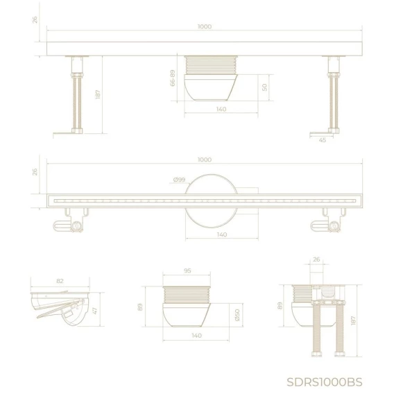 Душевой трап (лоток) Knotlor Core SDRS1000BS 100 см, с решеткой, щелевой, нержавеющая сталь