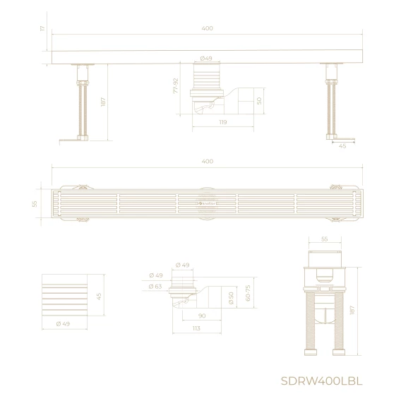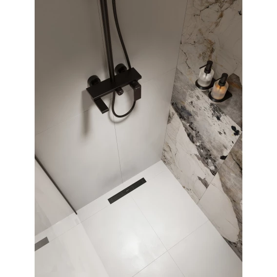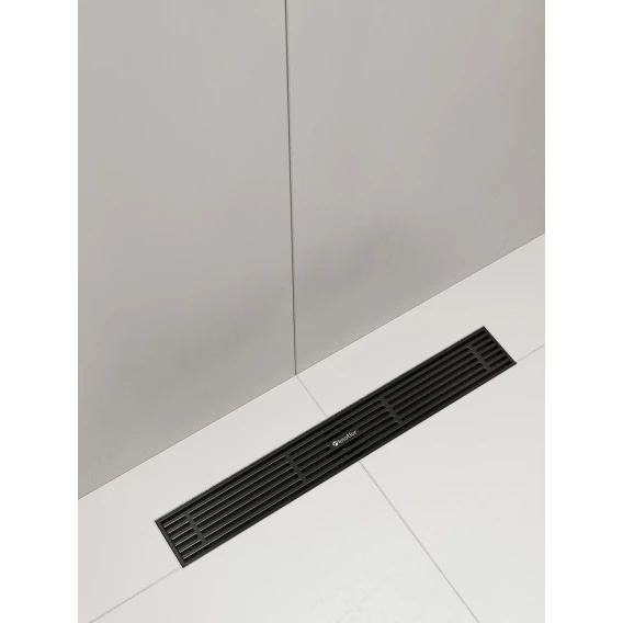 Душевой трап (лоток) Knotlor Storm SDRW0400LBL 40 см, с решеткой, перфорированный, черный матовый