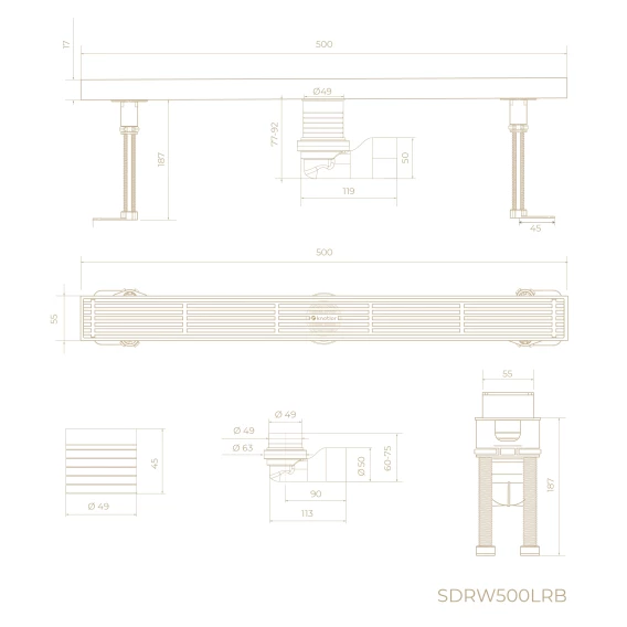 Душевой трап (лоток) Knotlor Storm SDRW0500LRB 50 см, с решеткой, перфорированный, бронза матовая