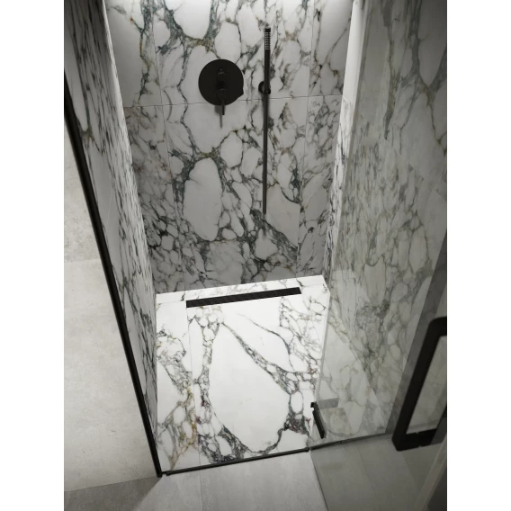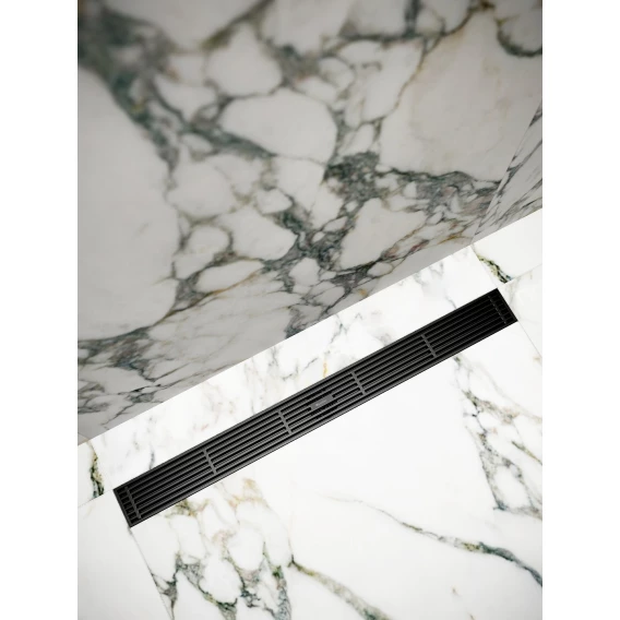 Душевой трап (лоток) Knotlor Storm SDRW0600LBL 60 см, с решеткой, перфорированный, черный матовый