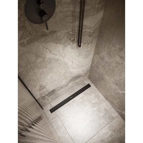 Душевой трап (лоток) Knotlor Terra SDRW0700BL 70 см, с решеткой, 2 в 1 под плитку, черный матовый