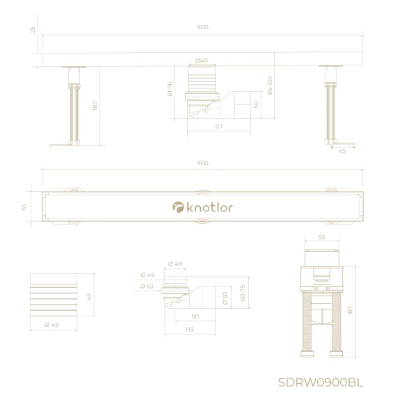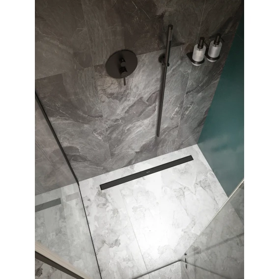 Душевой трап (лоток) Knotlor Terra SDRW0900BL 90 см, с решеткой, 2 в 1 под плитку, черный матовый