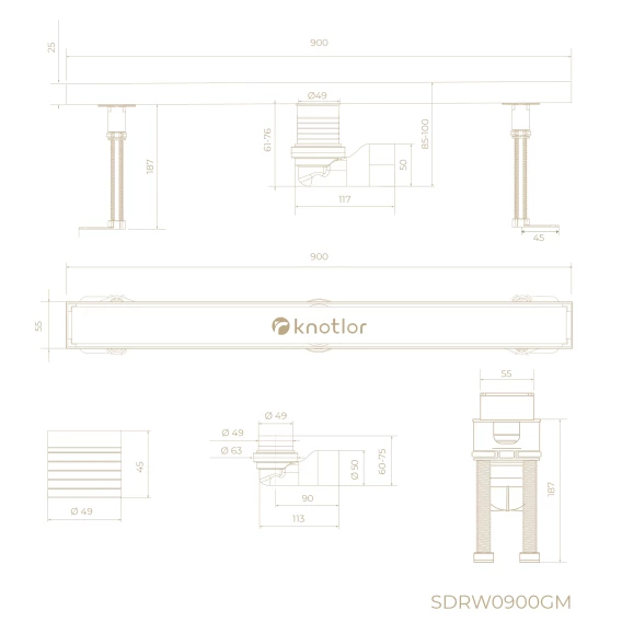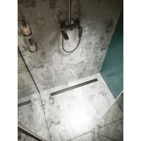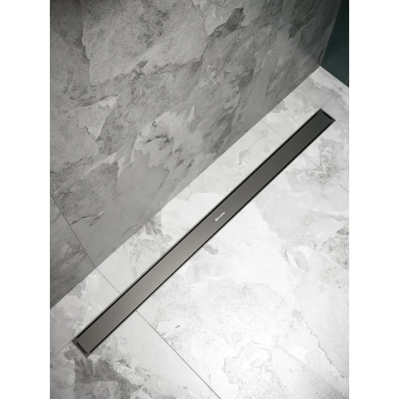 Душевой трап (лоток) Knotlor Terra SDRW0900GM 90 см, с решеткой, 2 в 1 под плитку, вороненая сталь