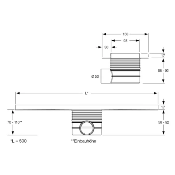 изготовлен из нержавеющей сталиВысота 70-110 ммПропускная способность 0,81 л/секС регулируемой по сторонам и высоте решеткой,С гидрозатвором,С компенсатором по высоте,Высота затвора воды 30 и 50 мм,В комплекте набор для изоляции:Уплотнительная лента на флизелиновой основе,Уплотняющая гидроизоляционная сухая смесь.В комплекте: опорные ножки.Заказывать дополнительно: Дизайн-решетку «А» или «PLAN» из нержавеющей стали толщиной 2 мм.