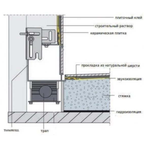 Изготовлен из нержавеющей сталиПропускная способность 0,81 л/сек  В комплекте накладка из нержавеющей стали  С гидрозатворомС компенсатором по высотеВысота затвора воды 30 и 50 ммВ комплекте набор для изоляции: