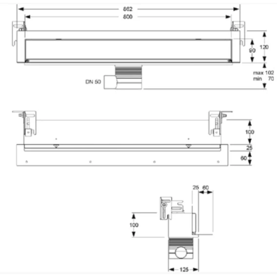 Душевой трап (лоток) Mepa TersoWAL 150391 80 см, с решеткой, щелевой, хром