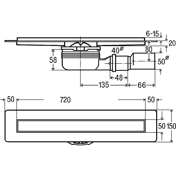 фланец с песчаным покрытием, решетка глянцевая, монтажные опоры, съемное устройство для защиты от неприятного запаха из системы канализации, возможность прочистки отводящего трубопровода, поворотный выпуск DN40, переход на DN50, сетчатый фильтр