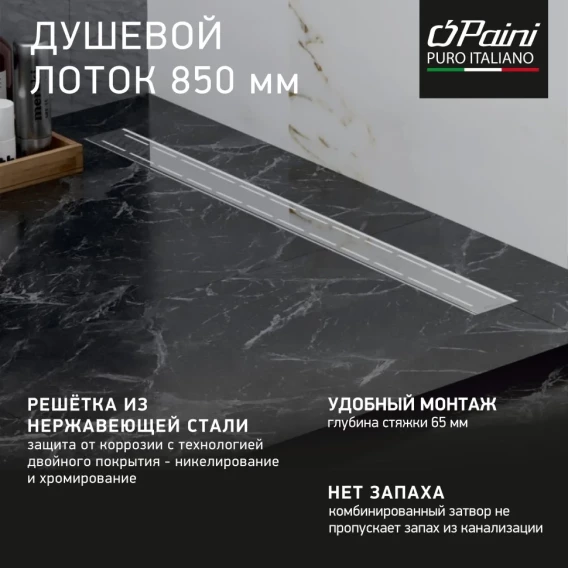 Душевой трап (лоток) Paini Line CH850L 85 см, с решеткой, перфорированный, хром