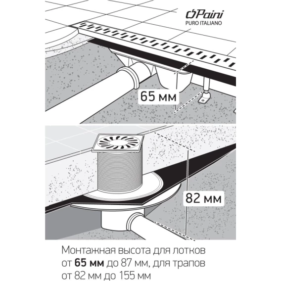 Душевой трап (лоток) Paini Medium CH850MC 85 см, с решеткой, перфорированный, черный матовый