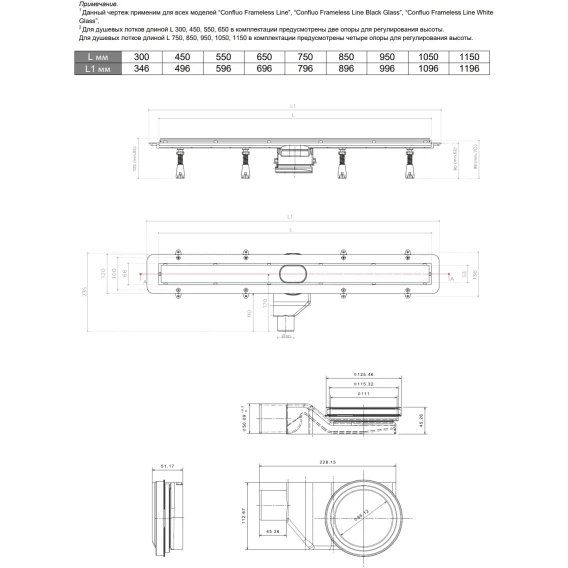 Душевой трап (лоток) Pestan Confluo Frameless Gold Line 13701225 95 см, с решеткой, 2 в 1 под плитку, золотой