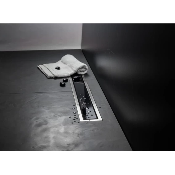 Душевой трап (лоток) Pestan Confluo Premium Black Glass Line 13000294 75 см, с решеткой, щелевой, матовый хром/черный глянец