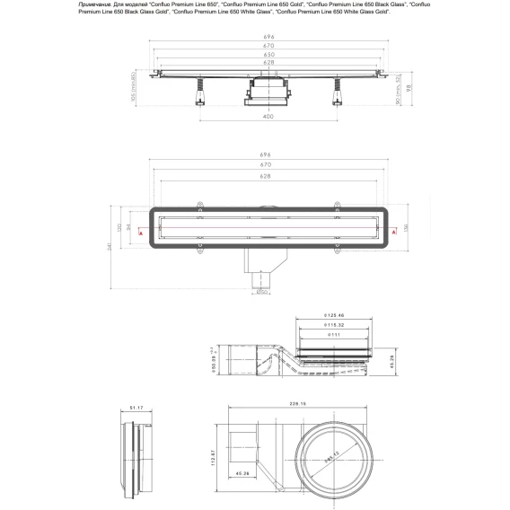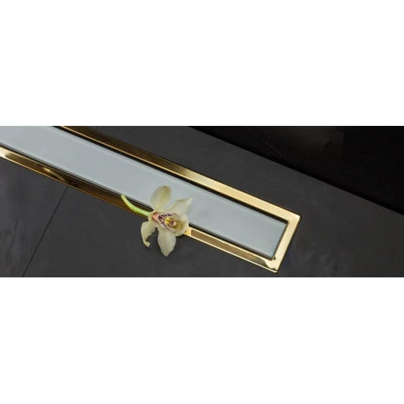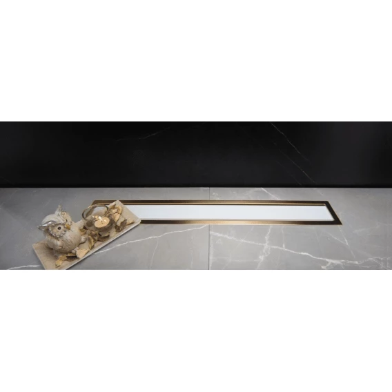 Душевой трап (лоток) Pestan Confluo Premium White Glass Gold Line 13100122 65 см, с решеткой, щелевой, белый глянец/золотой