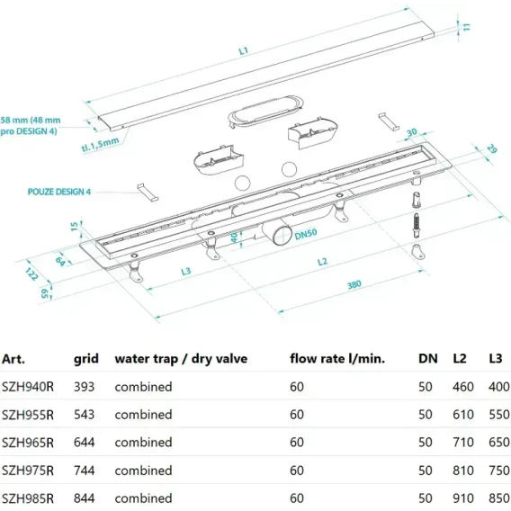 Душевой трап (лоток) PlastBrno Design 4 SZH940R 39,3 см, с решеткой, 2 в 1 под плитку, розовое золото матовый