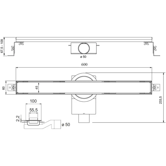 Душевой трап (лоток) Plumberia Selection Linear PSL60MT 60 см, с решеткой, 2 в 1 под плитку, нержавеющая сталь