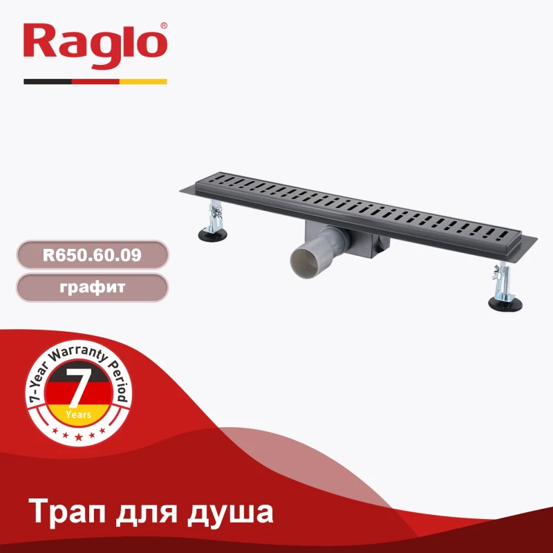 Душевой трап (лоток) Raglo R650.60.09 60 см, с решеткой, перфорированный, графит матовый