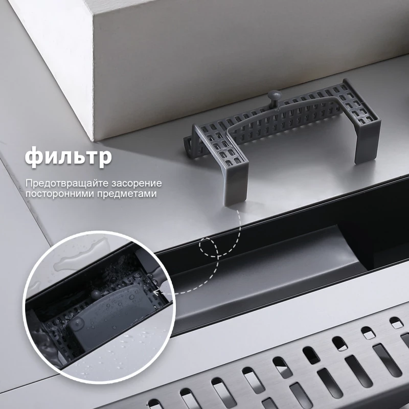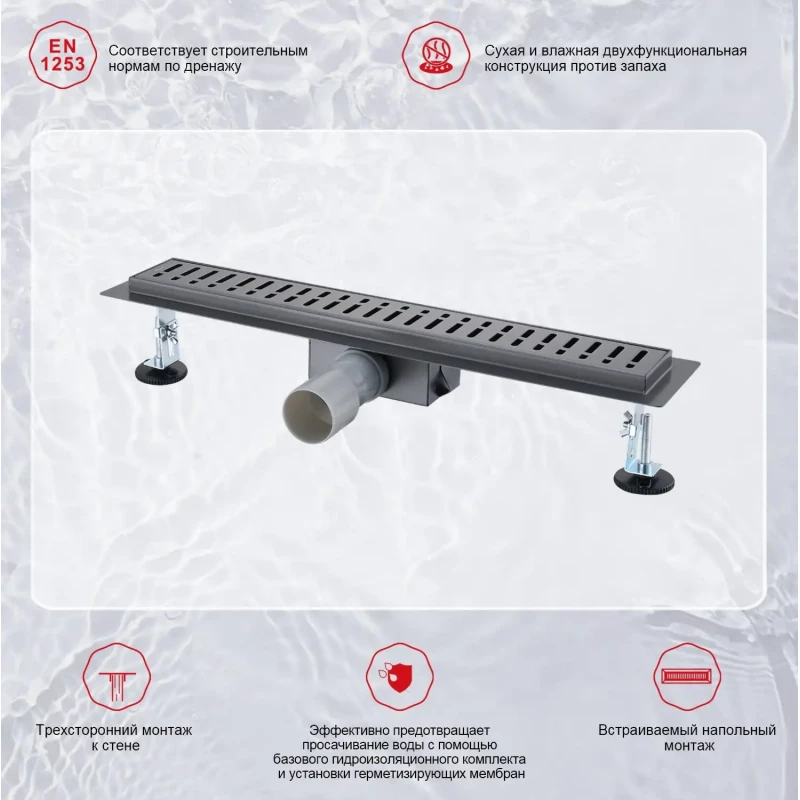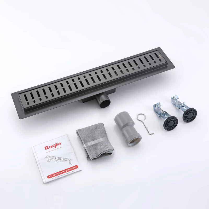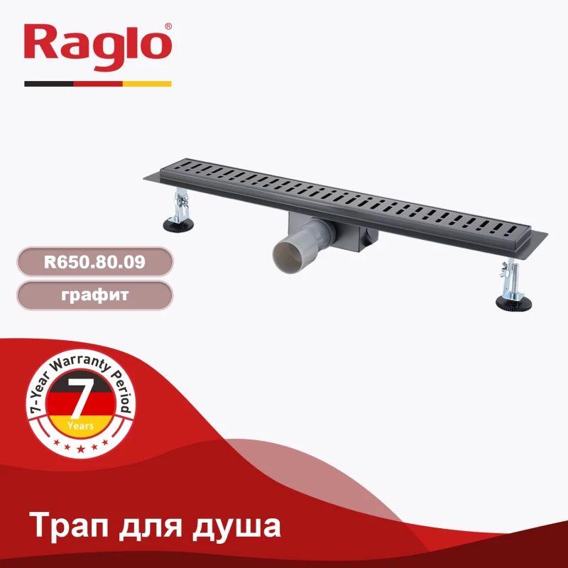 Душевой трап (лоток) Raglo R650.80.09 80 см, с решеткой, перфорированный, графит матовый