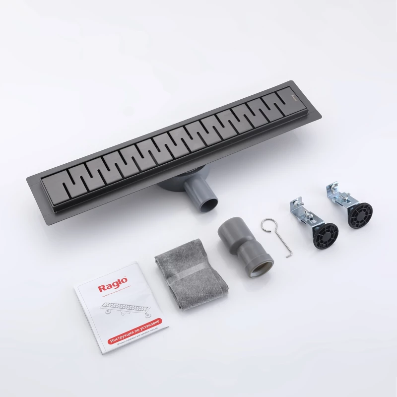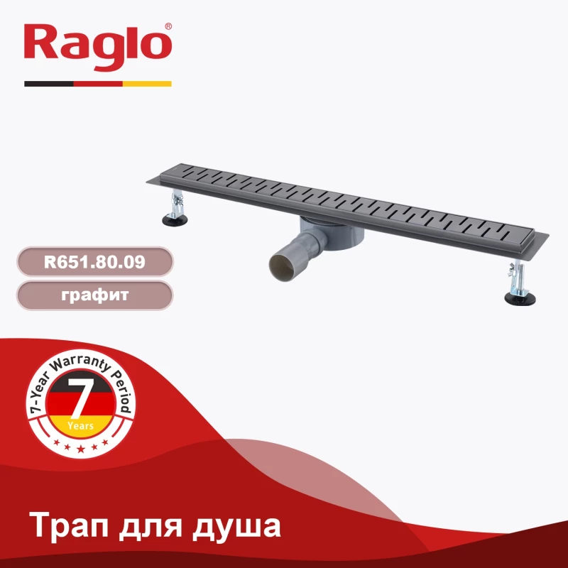 Душевой трап (лоток) Raglo R651.80.09 80 см, с решеткой, перфорированный, графит матовый