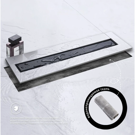 Душевой трап (лоток) Raglo R652.50.06 50 см, с решеткой, 2 в 1 под плитку, черный матовый