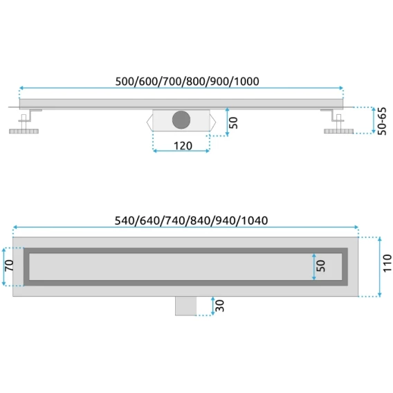 Душевой трап (лоток) Rea Neox REA-G2502 70 см, с решеткой, щелевой, матовый хром