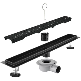 Душевой трап (лоток) Savol S-DL03H-30 30 см, с решеткой, перфорированный, черный матовый