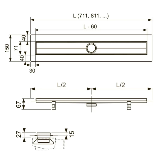 • Сифон DN 50, боковой слив. Установочная высота 95 мм.