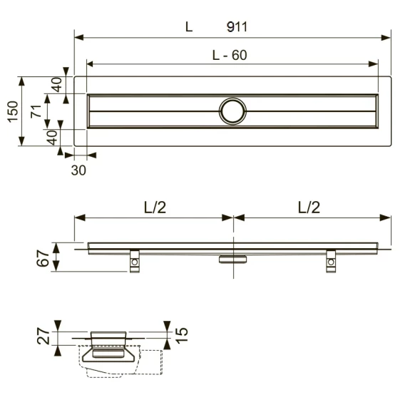 • Сифон DN 50, боковой слив. Установочная высота 95 мм.