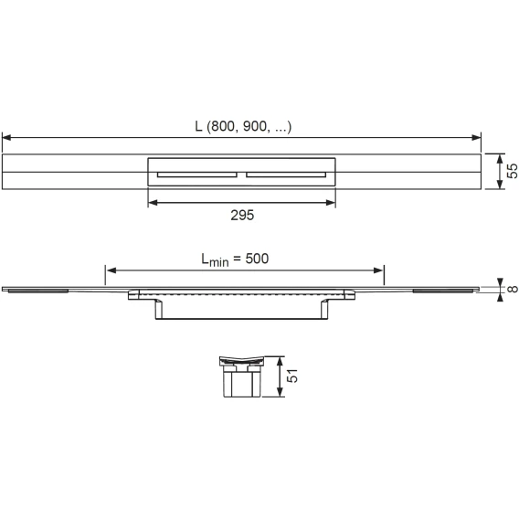 • Душевой профиль может быть укорочен до минимальной длины 500 мм