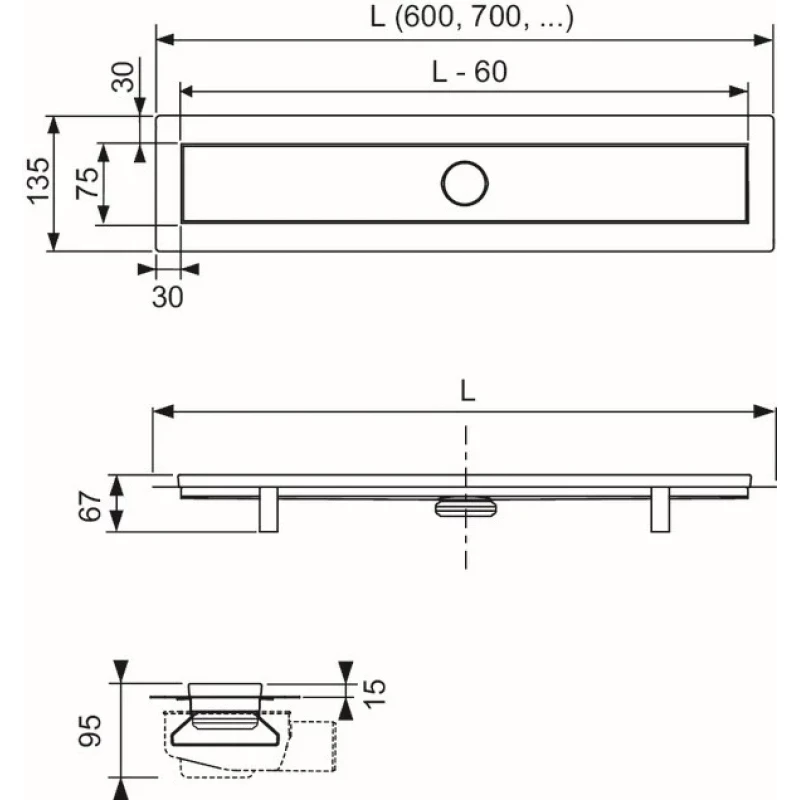 Душевой трап (лоток) Tece TECElinus 15103069 54 см, с решеткой, 2 в 1 под плитку, хром