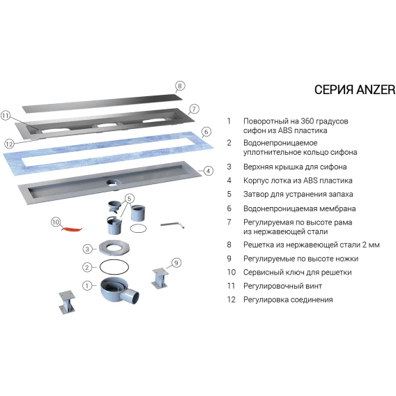 Гидроизоляционная лента, Решетка, Сифон, Ножки
