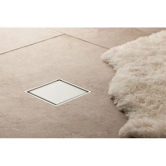 Душевой трап Pestan Confluo Standard Dry White Glass 3 13000106 94x94/50 мм, с решеткой, щелевой, хром/белый глянец