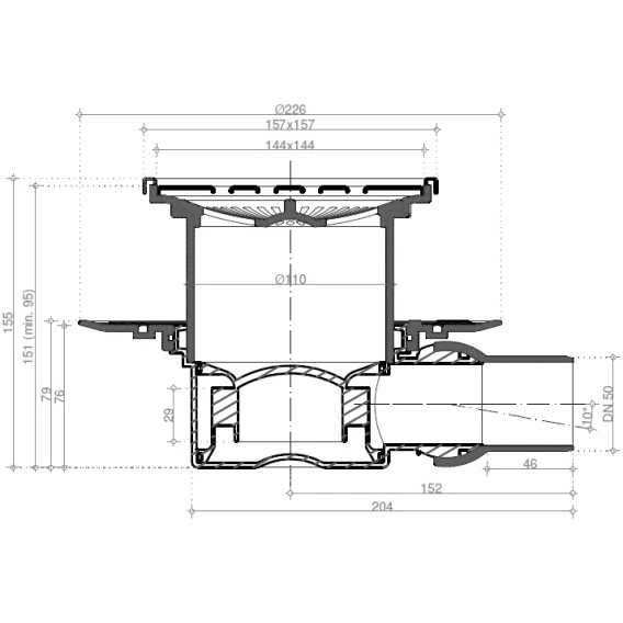 Душевой трап Pestan Confluo Standard Plate 1 13702556 144x144/50 мм, с решеткой, 2 в 1 под плитку, хром/матовый хром